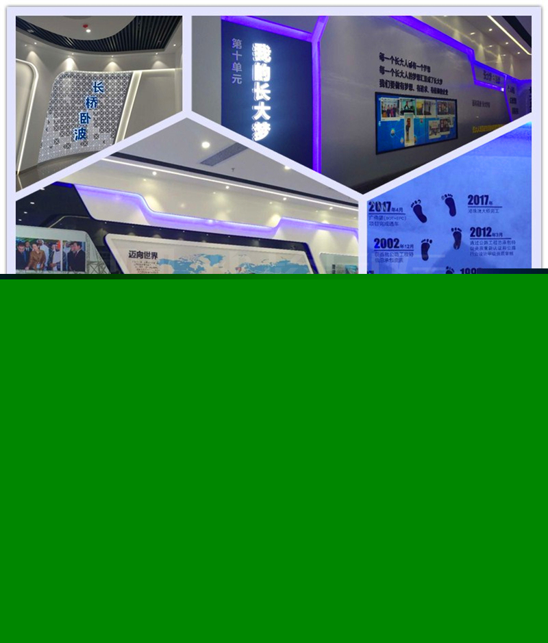 華竣國(guó)際在深入了解長(zhǎng)大背后的點(diǎn)點(diǎn)滴滴后,獨(dú)立出一塊展示區(qū)域。因?yàn)槊恳粋€(gè)重大項(xiàng)目都像一座豐碑,見(jiàn)證著長(zhǎng)大成長(zhǎng)的腳印,講述著長(zhǎng)大人艱苦奮斗,突破創(chuàng)新的故事,設(shè)計(jì)師更以重點(diǎn)模型融合聲光電綜合展示長(zhǎng)大的各個(gè)重要階段的項(xiàng)目,令參觀者在多媒體科技展示的效果下,對(duì)長(zhǎng)大企業(yè)有更深刻的了解和印象。