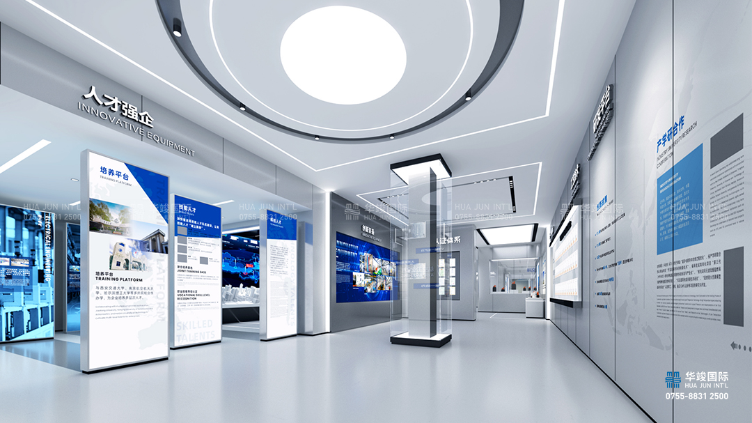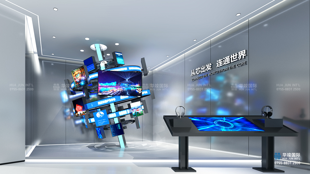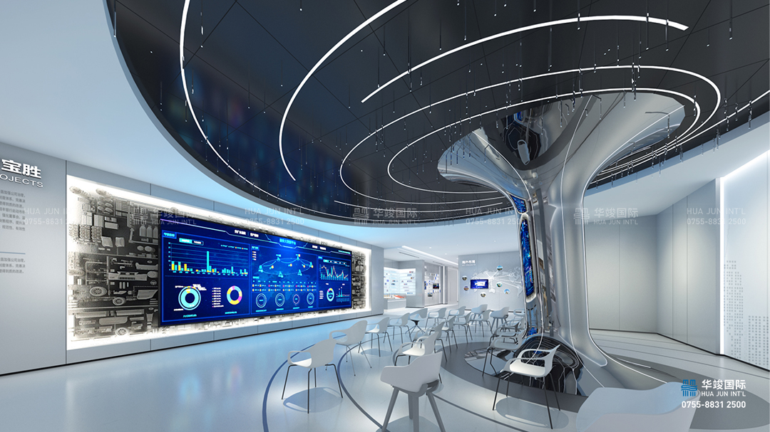 寶勝科技園區(qū)展館設計項目是由華竣出品的優(yōu)秀作品,華竣以創(chuàng)新的智慧展廳設計理念,融合互聯(lián)網(wǎng)+思維,順應科技化趨勢,結合互動多媒體、數(shù)字影片、數(shù)字沙盤、虛擬現(xiàn)實等科技展項,打造震撼視覺的高品質(zhì)科技展廳。