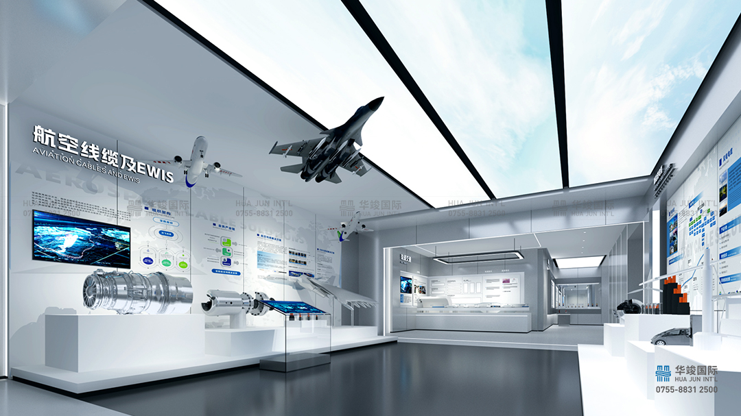 工業(yè)領域:軍工電纜,智能裝備電纜,工業(yè)機器人用移動軟電纜。“線纜應用”智能交互技術,在飛機模型場景中,呈現(xiàn)飛機切面結構的線纜分布圖,結合互動屏幕,多角度演繹飛機線纜線束、總線線纜的實際應用。