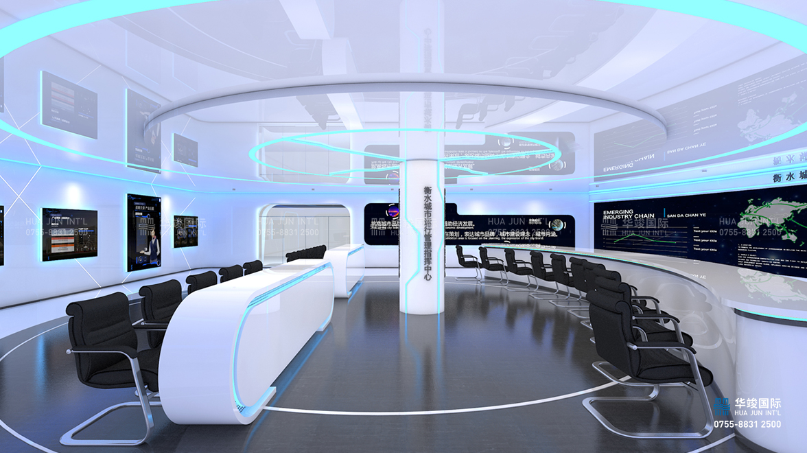 衡水智慧城市運行管理中心項目由華竣數(shù)創(chuàng)執(zhí)行整體設(shè)計施工。華竣數(shù)創(chuàng)規(guī)劃館設(shè)計部以“智慧城市展廳”為起點,結(jié)合數(shù)字沙盤、數(shù)字影院、虛擬現(xiàn)實、互動多媒體等技術(shù),打造承載城市歷史、展現(xiàn)城市現(xiàn)在、展望城市未來的智慧規(guī)劃館。