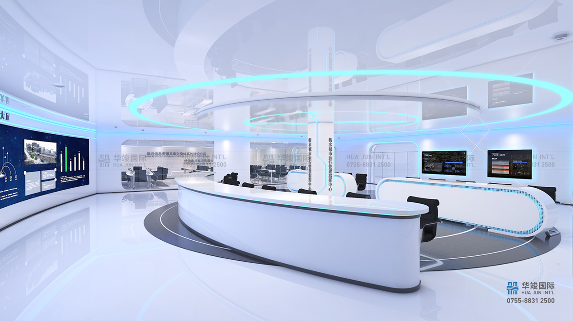 指揮大廳設(shè)置大屏幕展示,整體設(shè)計以流線型元素為主,更具前衛(wèi)感,科技感。主要用于城市運行管理,應(yīng)急指揮,領(lǐng)導(dǎo)觀摩,參觀演示,這里也是信息化建設(shè)成果展示的窗口。其設(shè)計最大程度利用現(xiàn)有空間,并結(jié)合智能展示設(shè)置操作臺,可供多人操控屏幕,指揮工作。