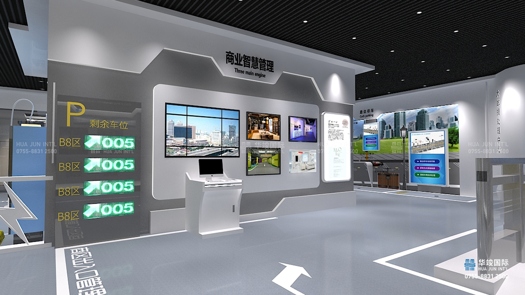 捷順科技·大數據智慧展廳設計項目由華竣數創執行整體設計施工,華竣數創以創新的智慧展廳設計理念,融合互聯網+思維,順應科技化趨勢,結合互動多媒體、數字影片、數字沙盤、虛擬現實等科技展項,打造震撼視覺的高品質科技展廳。
