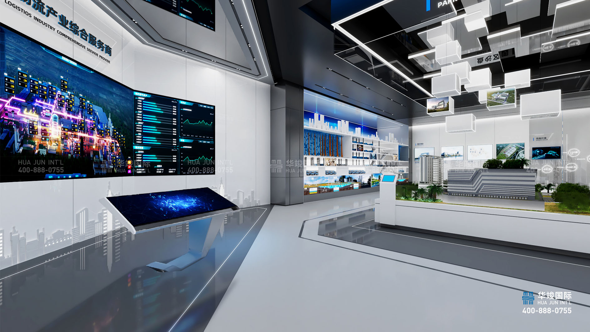 深國際物流企業(yè)展廳設計光項目展示中心由華竣數(shù)創(chuàng)執(zhí)行整體設計施工。華竣以創(chuàng)新的智慧展廳設計理念,開啟一段現(xiàn)實世界與數(shù)字世界完美融合的品牌塑造之旅,建設一個集產(chǎn)品體驗、用戶體驗、品牌展示、全景物流主題藝術(shù)裝置等多種服務和功能為一體的敘事體驗空間。