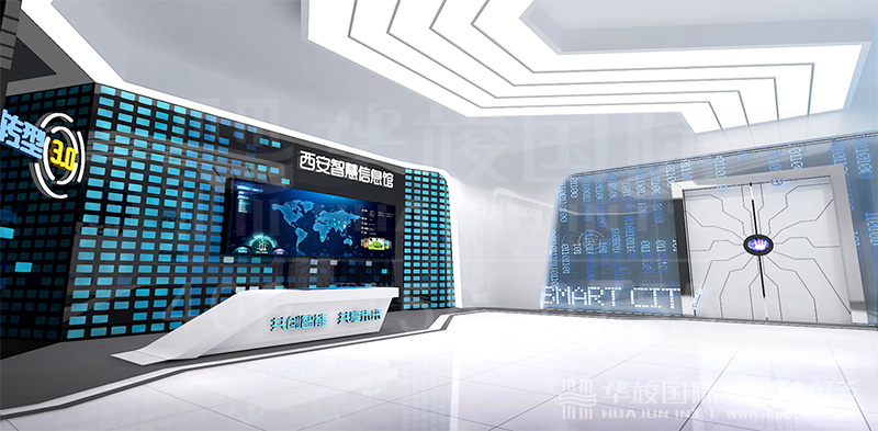 這里,華竣國際以中國電信西安智能信息展館為例,淺談一下科技類企業展廳設計的要點。
