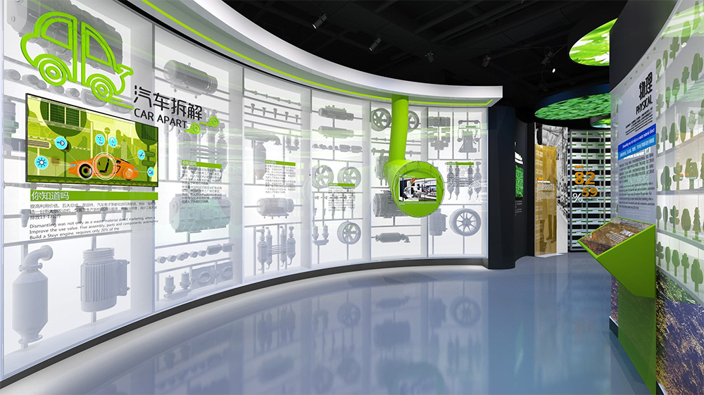 展館內(nèi)容和展示分區(qū)規(guī)劃上,除了做一些基礎(chǔ)的圖文科普知識(shí)外,還可以設(shè)置一些實(shí)物展示區(qū),將一些可以重復(fù)利用的垃圾變廢為寶,展館內(nèi)的面積有限,所以不是所有展館都可以做到參觀和垃圾分揀流水線展現(xiàn)在同一個(gè)空間,這就需要設(shè)置一些多媒體展示區(qū),通過(guò)高科技展示手段實(shí)現(xiàn)這方面需求。